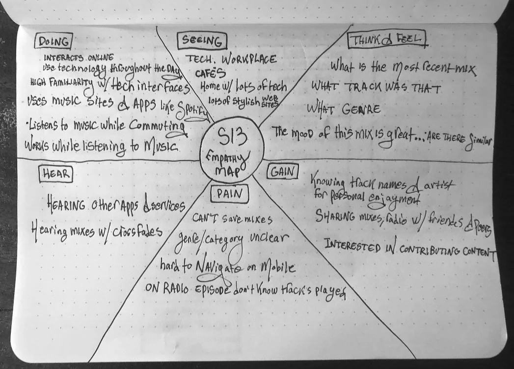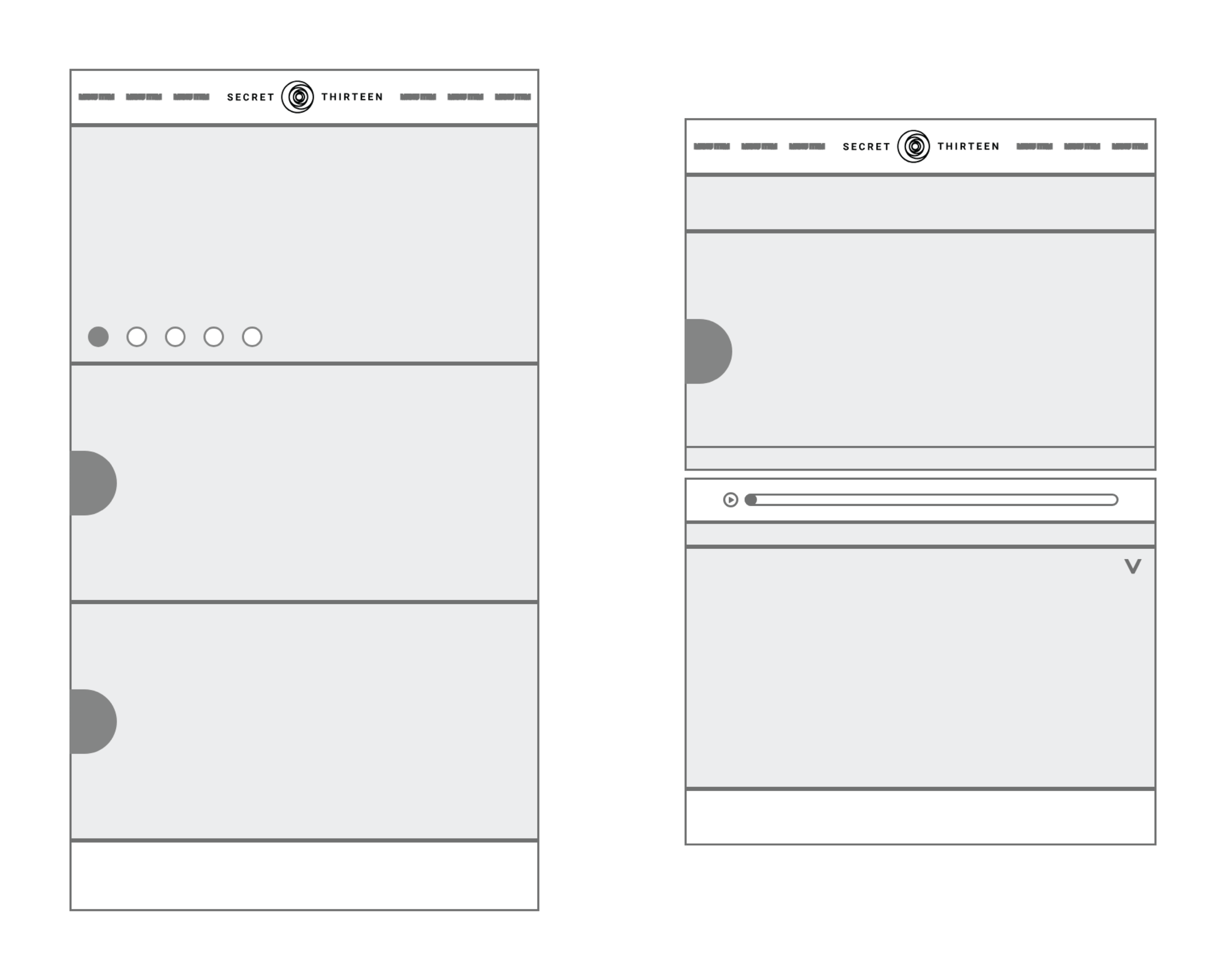 Consistent with the needs of the site and my research I determined the two most important tasks for users to perform. Task 1 was the same whether you were navigating to DJ mixes or radio episodes, so I combined them. Task 2 included all the other forms of navigation from the homepage to the rest of the Secret 13 content.